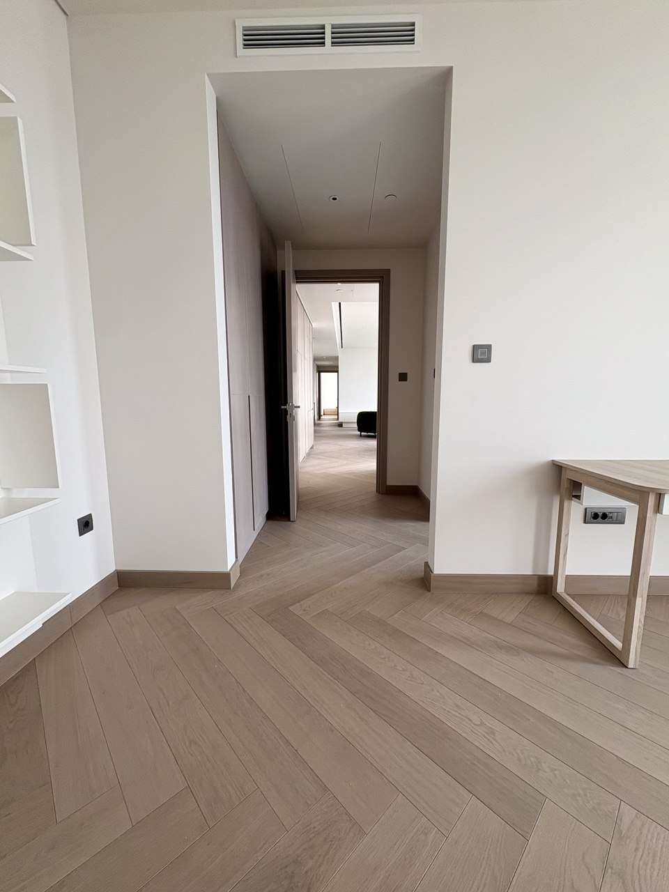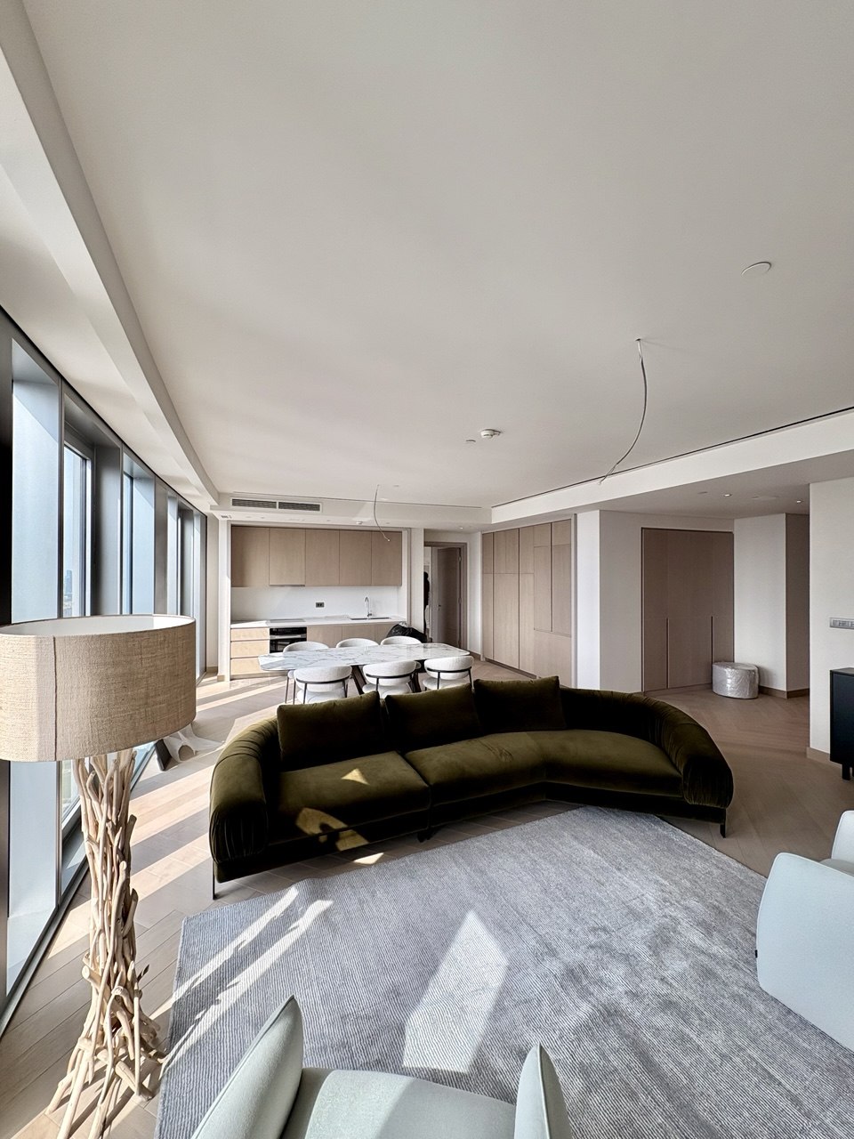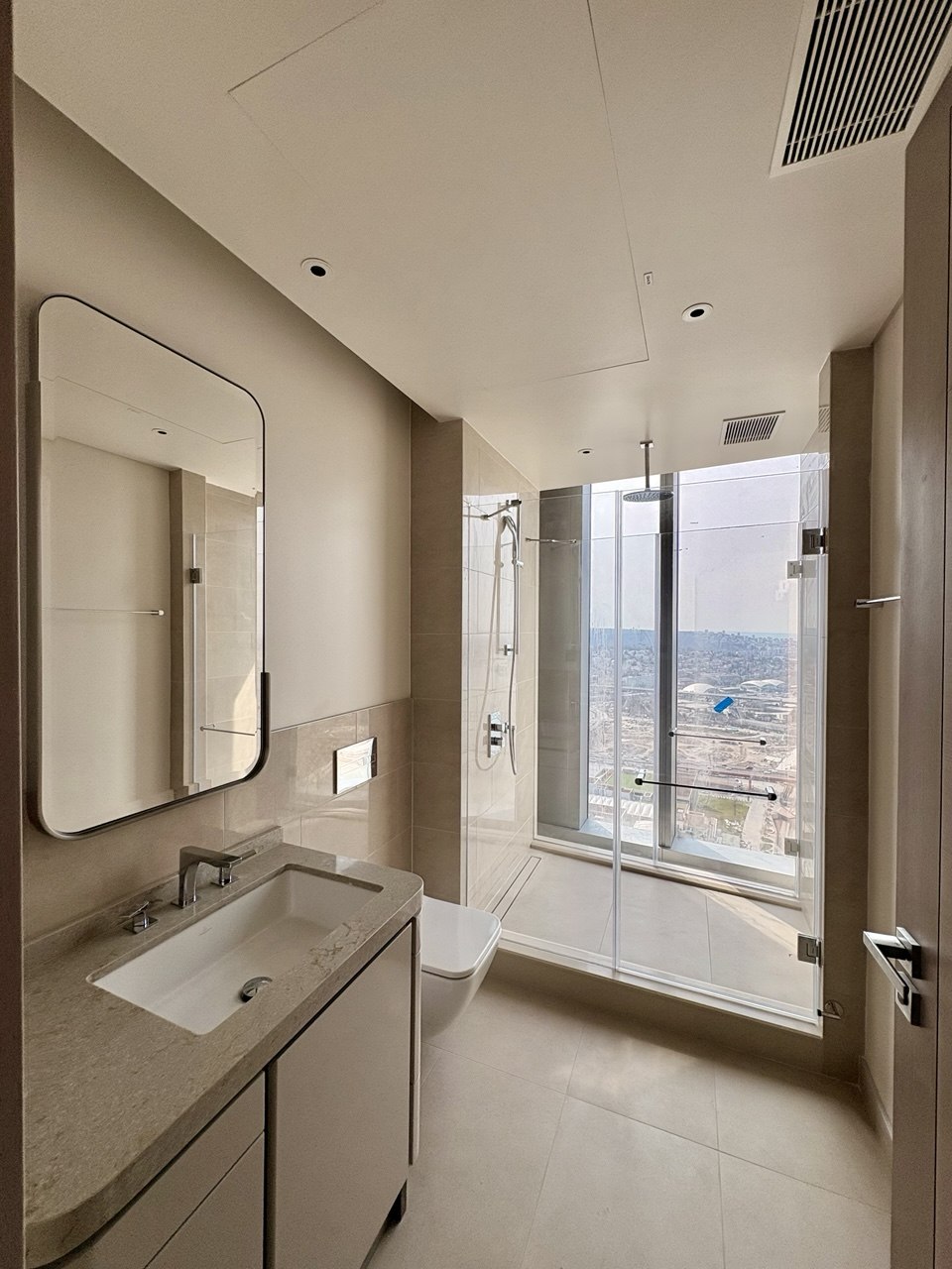 Stan ukupne površine 163,50 m² odlikuje se pažljivo osmišljenim rasporedom i vrhunskom opremom. Sastoji se od prostranog dnevnog boravka, trpezarije, tri komforne spavaće sobe, četiri moderno opremljena kupatila i hodnika. Velike staklene površine omogućavaju obilje prirodne svetlosti i pružaju impresivan panoramski pogled na grad i reku.